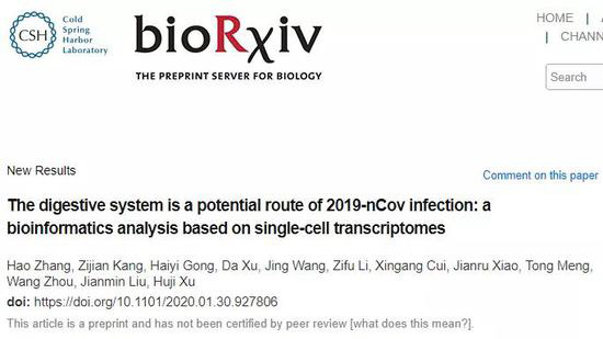 2020年1月31日,海軍軍醫(yī)大學(xué),清華大學(xué)及同濟大學(xué)等多單位合作在bioRxiv在線發(fā)表題為“The digestive system is a potential route of 2019-nCov infection:?a bioinformatics analysis based on single-cell transcriptomes”的研究論文,該研究的目的是為了剖析表達(dá)ACE2的細(xì)胞組成和比例,并探索2019-nCov感染在消化系統(tǒng)感染中的潛在途徑,分析了肺,食道,胃,回腸和結(jié)腸單細(xì)胞轉(zhuǎn)錄組的數(shù)據(jù)集。