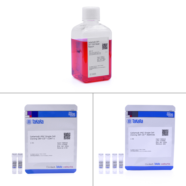 通過電穿孔的方法對hiPSCs進(jìn)行有效的基因編輯,Takara提供重組Cas9蛋白質(zhì)和產(chǎn)生大量sgRNAs所有必要的試劑,用于電穿孔hiPSCs。后續(xù)與Cellartis iPSC Single-Cell Cloning DEF-CS Culture Media Kit (Code No. Y30021)一起使用,用于進(jìn)行基因編輯后的單細(xì)胞克隆形成和擴(kuò)增。單細(xì)胞克隆擴(kuò)增后,hiPSCs可以使用Cellartis DEF-CS 500 Culture System (Code No. Y30010)繼續(xù)培養(yǎng)。