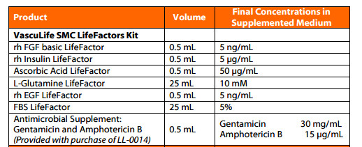 lifeline ?LL-0014 ??VascuLife SMC Complete Kit完全培養(yǎng)基