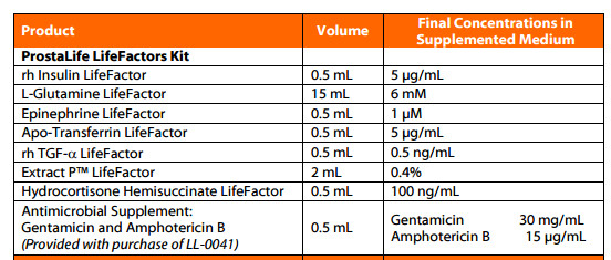 ProstaLife?基礎(chǔ)培養(yǎng)基不含抗菌劑和酚紅。這些補品可從Lifeline?獲得,但不是真核細胞增殖所必需的。
