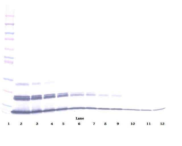 ELISA法檢測(cè)mCXCL 16(用10 0μ1/Well抗體溶液),其濃度為0.2 5~1.0μg/ml。該生物素化多克隆抗體與PeproTech的多克隆抗鼠CXCL 16(500-P201G)作為包被抗體,可檢測(cè)出至少0.2~0.4ng/孔的重組mCXCL 16。