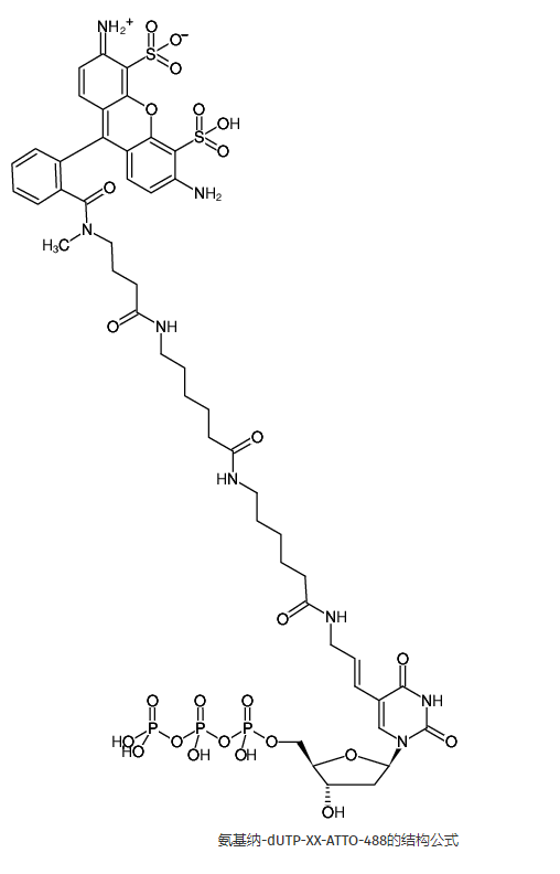 推薦氨基-dUTP-XX-ATTO488/dTTP比率用于PCR和尼克翻譯:30-50%氨基-UTP-XX-ATTO488/70-50% dTTP