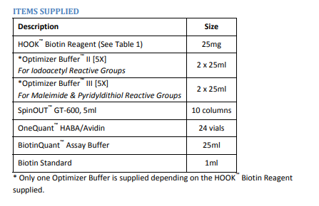 HOOK?-Biotin-BMMCC標(biāo)記試劑盒專為1-10mg蛋白在1ml緩沖液中偶聯(lián)而設(shè)計(jì),適合偶聯(lián)10次。