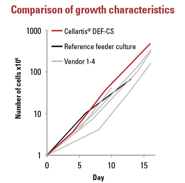 Cellartis DEF-CS培養(yǎng)系統(tǒng)使得單細(xì)胞干細(xì)胞操作成為常規(guī)的操作。該產(chǎn)品是專門針對人類誘導(dǎo)干細(xì)胞(hiPS)和人類胚胎干細(xì)胞(hES)研發(fā)的高效率增殖用培養(yǎng)基產(chǎn)品體系。該產(chǎn)品系統(tǒng)為all-in-one型,包括了所有組分,客戶不需要另外求購組分。該產(chǎn)品是成分確定的培養(yǎng)基產(chǎn)品,而且不需要飼養(yǎng)層。DEF-CS既可以實(shí)現(xiàn)單細(xì)胞培養(yǎng),也可以用于傳統(tǒng)的iPS培養(yǎng)模式以及大規(guī)模干細(xì)胞增殖。在使用DEF-CS培養(yǎng)基增殖干細(xì)胞時(shí),幾乎沒有背景分化的問題,這使得細(xì)胞篩選不再必需。作為一款創(chuàng)新產(chǎn)品,利用DEF-CS培養(yǎng)干細(xì)胞時(shí),可以使用酶消化法(enzymatic passaging)實(shí)現(xiàn)需要單細(xì)胞操作,這一特點(diǎn)十分有利于高通量細(xì)胞鑒別篩選(high-throughput screening)、轉(zhuǎn)染(transfection)、框架接種(scaffold seeding)等。