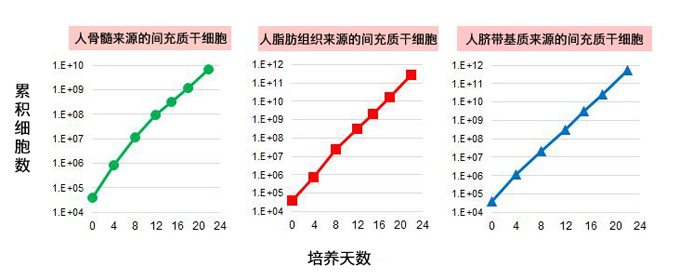 分別來源于人骨髄、脂肪組織、臍帶基質(zhì)的凍存間充質(zhì)干細(xì)胞,使用Cellartis??MSC Xeno-Free Culture Medium進(jìn)行了22天的培養(yǎng),細(xì)胞均顯示良好的增殖性能。